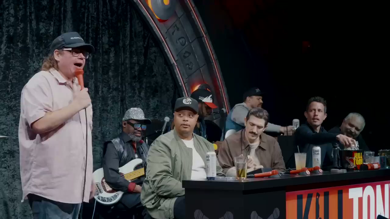Episode featuring Andrew Schulz and Deric Poston as guest hosts, with regular performances from Ari Matti, Cam Patterson, and William Montgomery, plus various bucket pulls including comedians discussing topics from porn restrictions in Texas to serial killer documentaries.