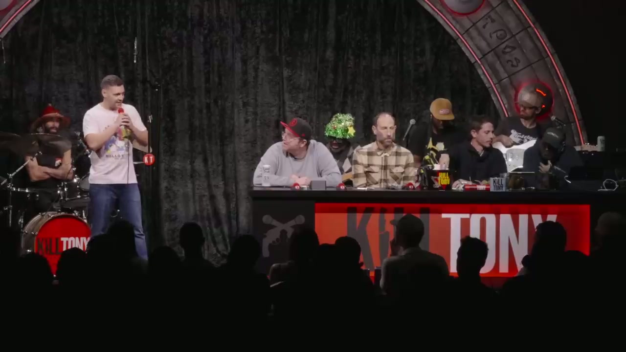 Tony Hinchcliffe hosts with guest hosts Sam Tallent and Ari Shaffir, featuring regulars William Montgomery, Cam Patterson, and Ari Matti, plus various bucket pull comedians including a magician, stroke survivor, and international criminal henchman