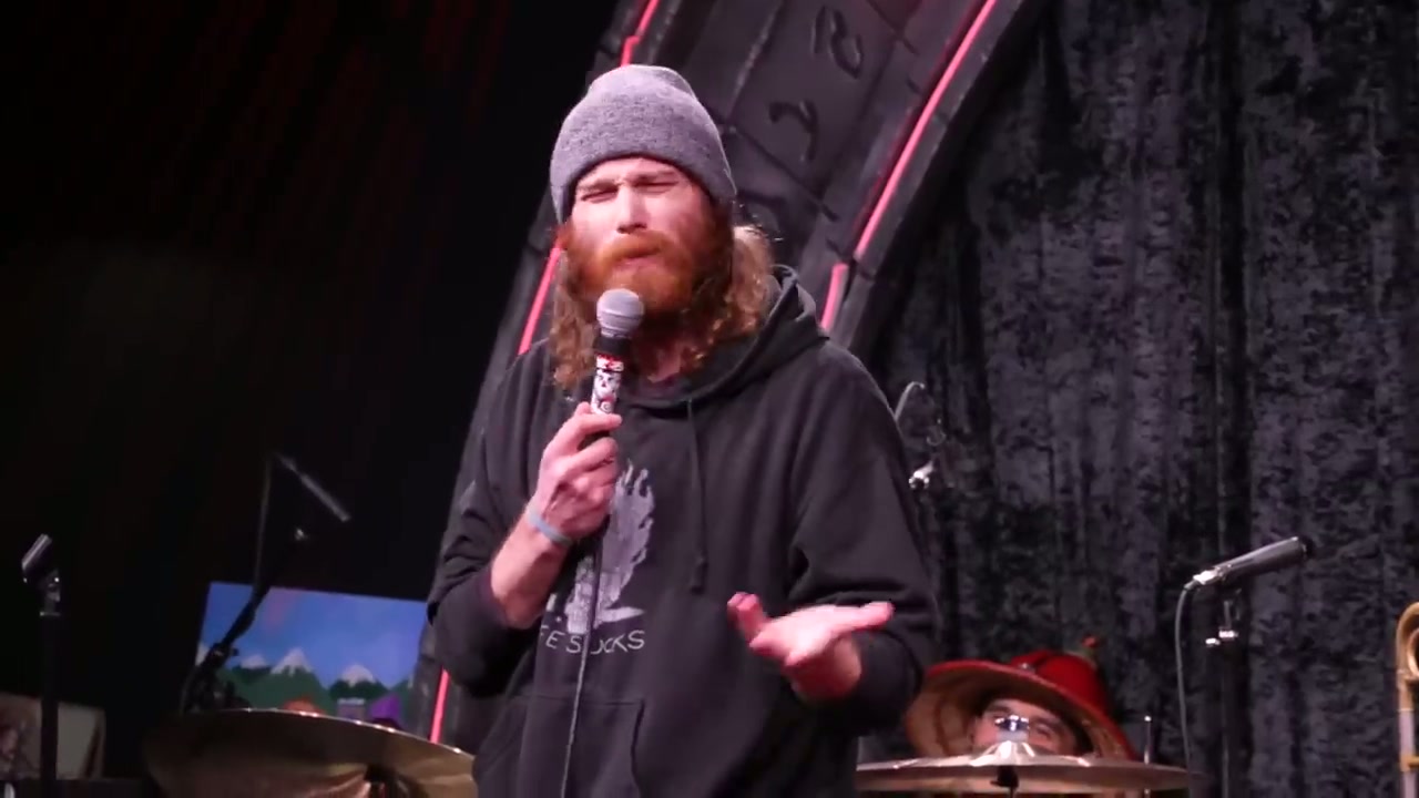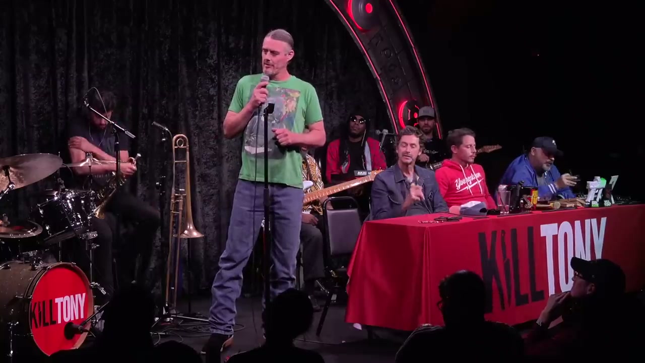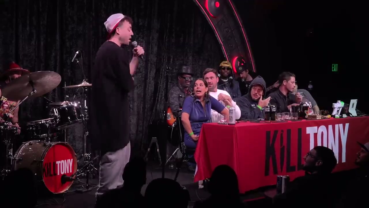 Episode featuring guest host Kirk Fox with regular performers Hans Kim, Cam Patterson, and William Montgomery, plus multiple bucket pulls including comedians discussing everything from drone flying to spaghetti delivery services