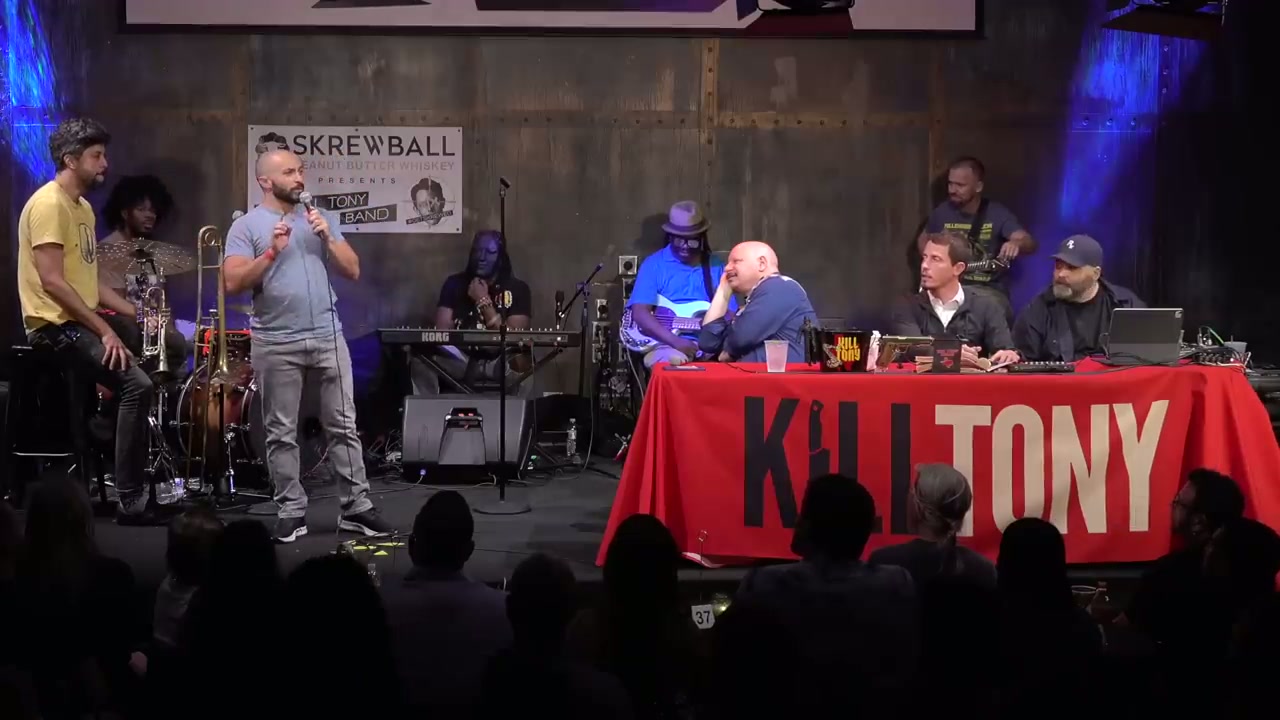 Jeff Ross joins Tony as guest host for an episode featuring bucket pulls, regulars William Montgomery and Hans Kim, plus a Canadian rapper, various comedians telling personal stories, and multiple musical performances by the band