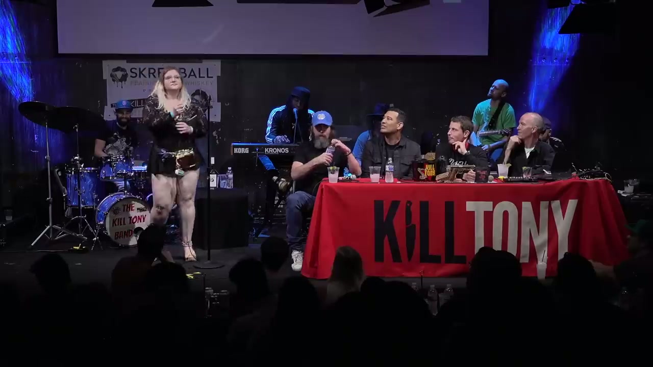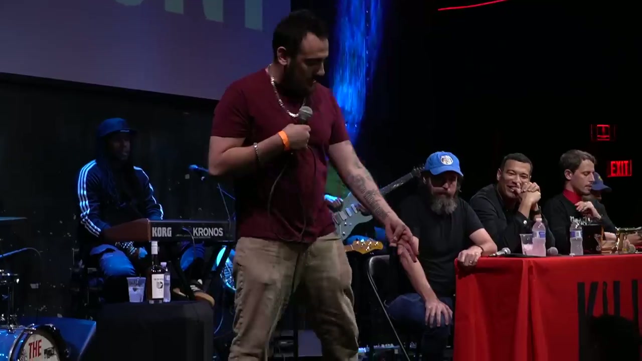 Live comedy podcast episode featuring guest hosts Duncan Trussell, Doug Stanhope, and Michael Yo, with regular Hans Kim and various bucket pull comedians performing at Vulcan Gas Company in Austin, Texas
