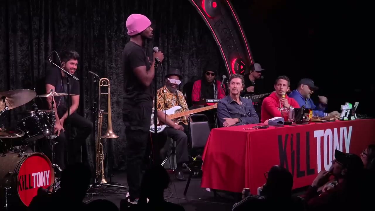 Kill Tony episode featuring guest host Benji Aflalo, regulars Hans Kim, David Lucas, and William Montgomery, plus bucket pulls from comedians including a Mexican drum-off challenge