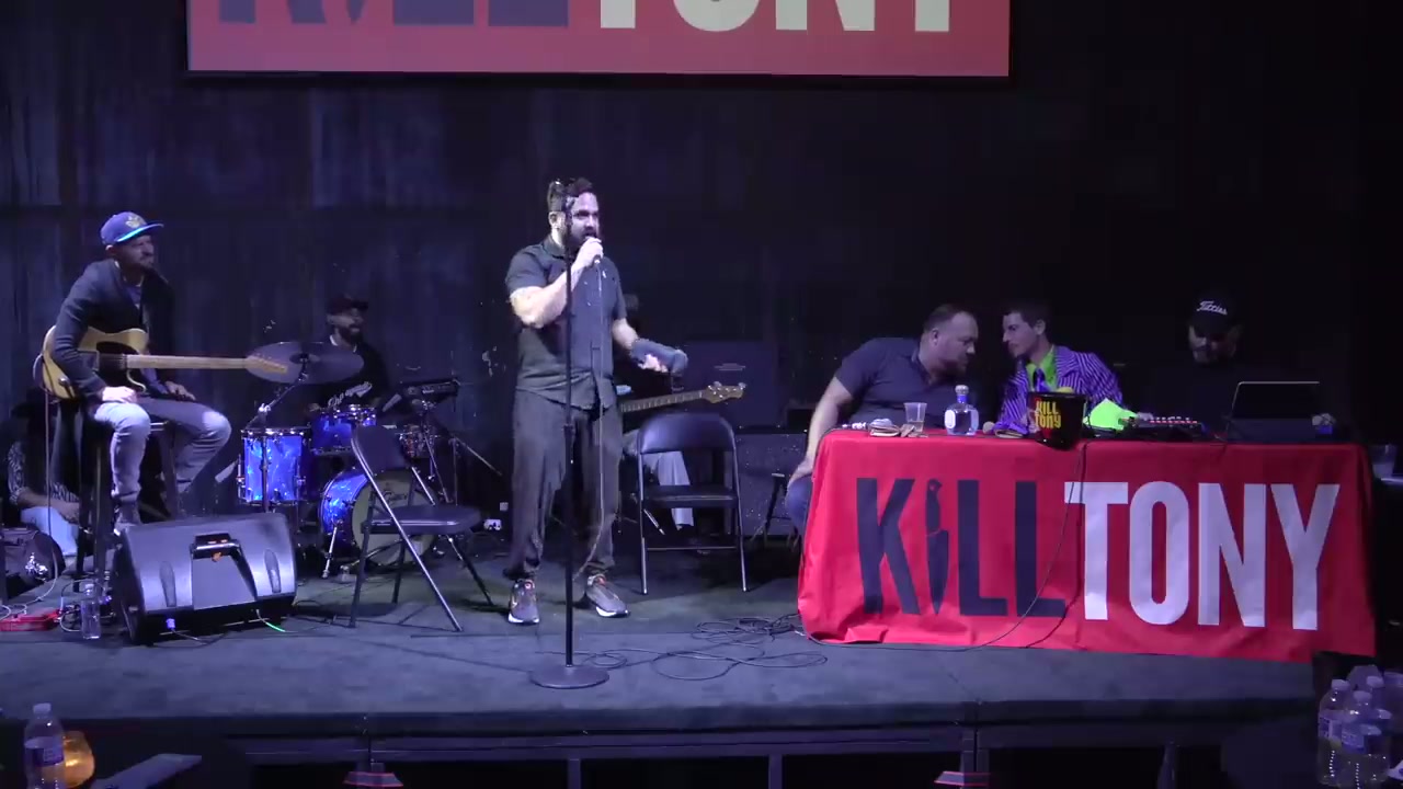 Kill Tony episode featuring Alex Jones as guest host, with surprise appearances by Joe Rogan and Duncan Trussell, multiple bucket pulls, and Hans Kim becoming a new regular