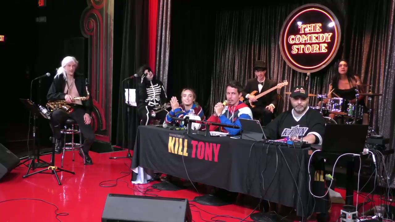 Tony Hinchcliffe hosts with guest Ali Macofsky, a former Kill Tony regular who started at 19. The band performs as horror-themed characters from Channel 9. Features bucket pulls, regulars William Montgomery, David Lucas, and Michael Lair, plus kitchen worker Tony Gidley's comedy debut.