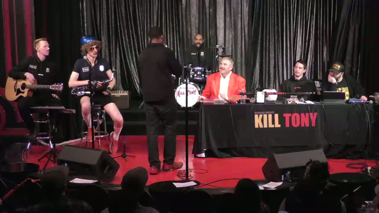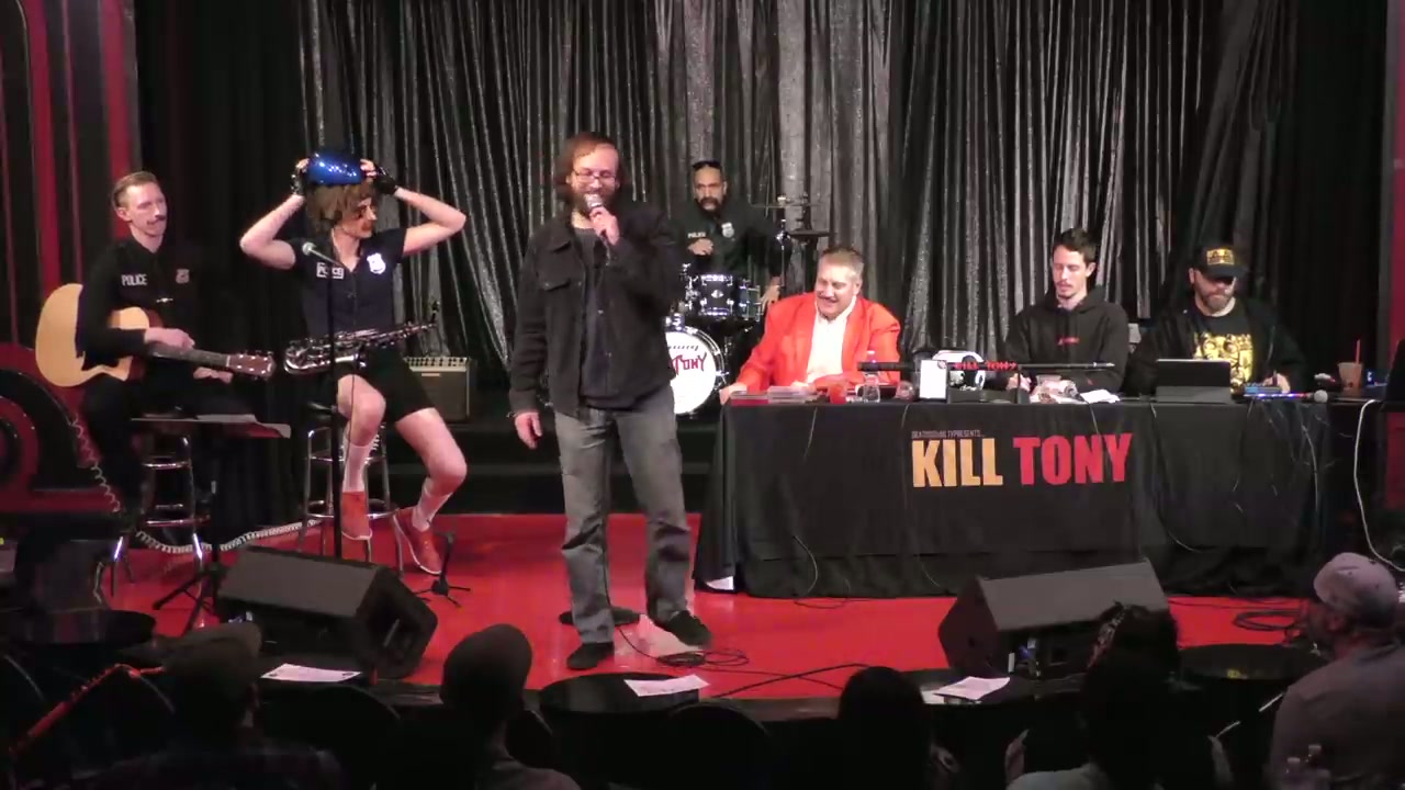 Comedy Store episode featuring Brian Holtzman as guest host, police officer characters from the band, bucket pulls, regular performances, and Michael Lehrer becoming the third regular