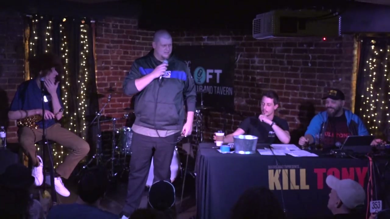 Third time doing comedy, works at farmer's market, Kill Tony subreddit mod, kissed Joel on stage