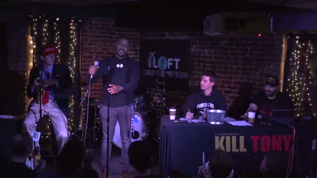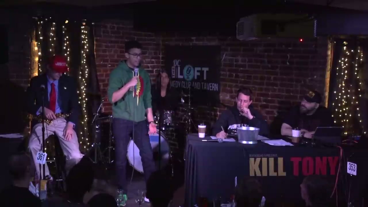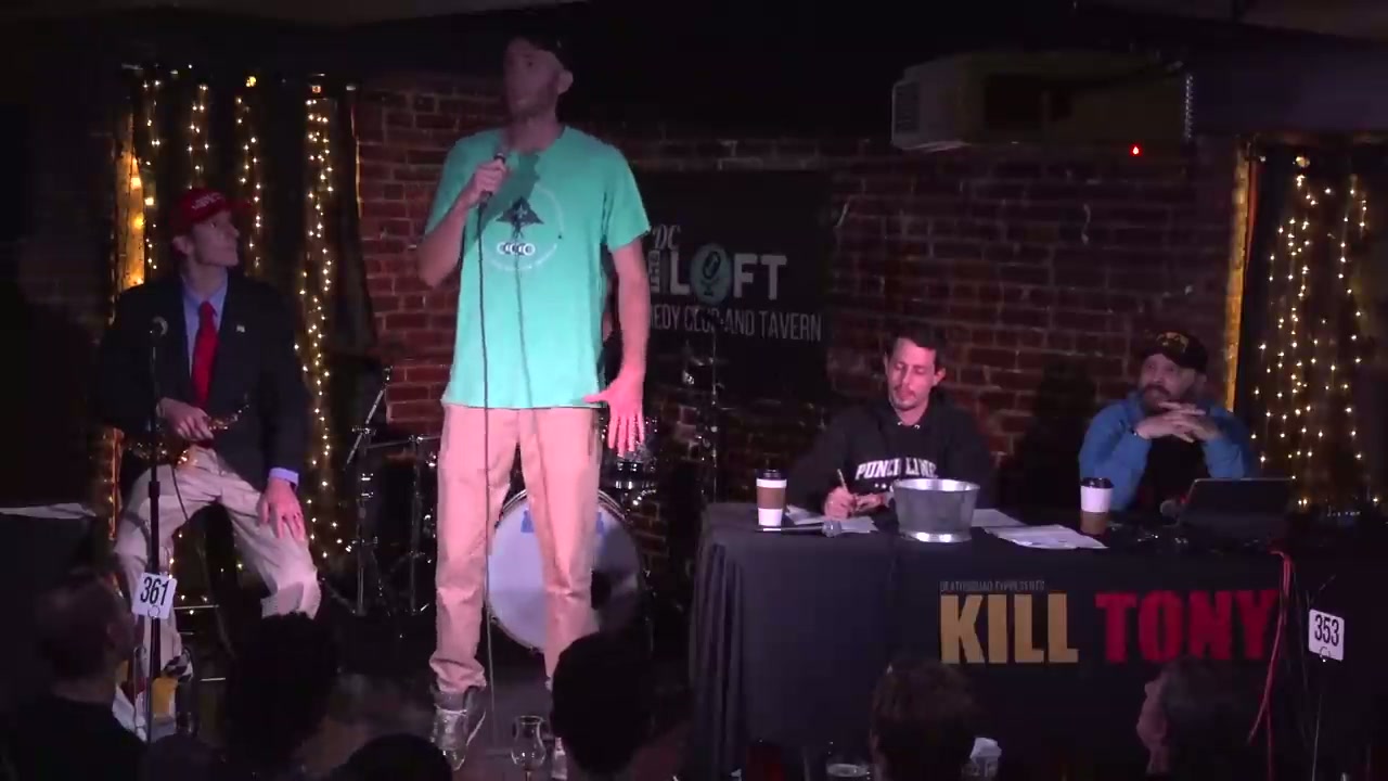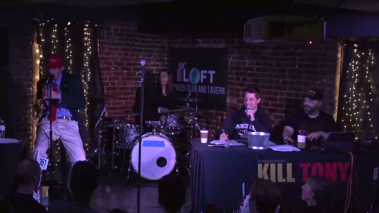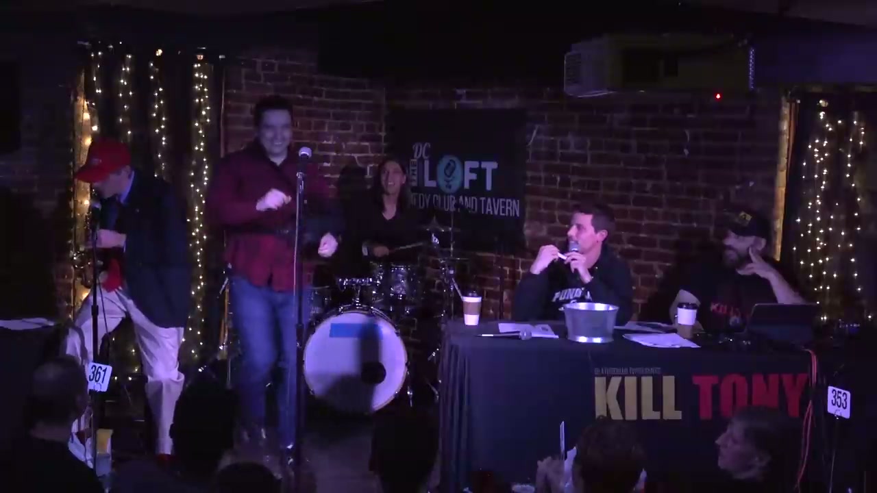 First ever Kill Tony episode in Washington D.C. featuring political character work from the band and a variety of local and visiting comedians performing from the bucket