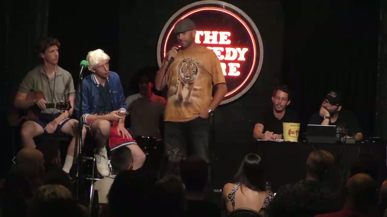First time comedian, paints parking lots, claims to sponsor fighters and punch people
