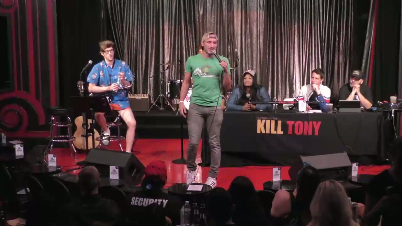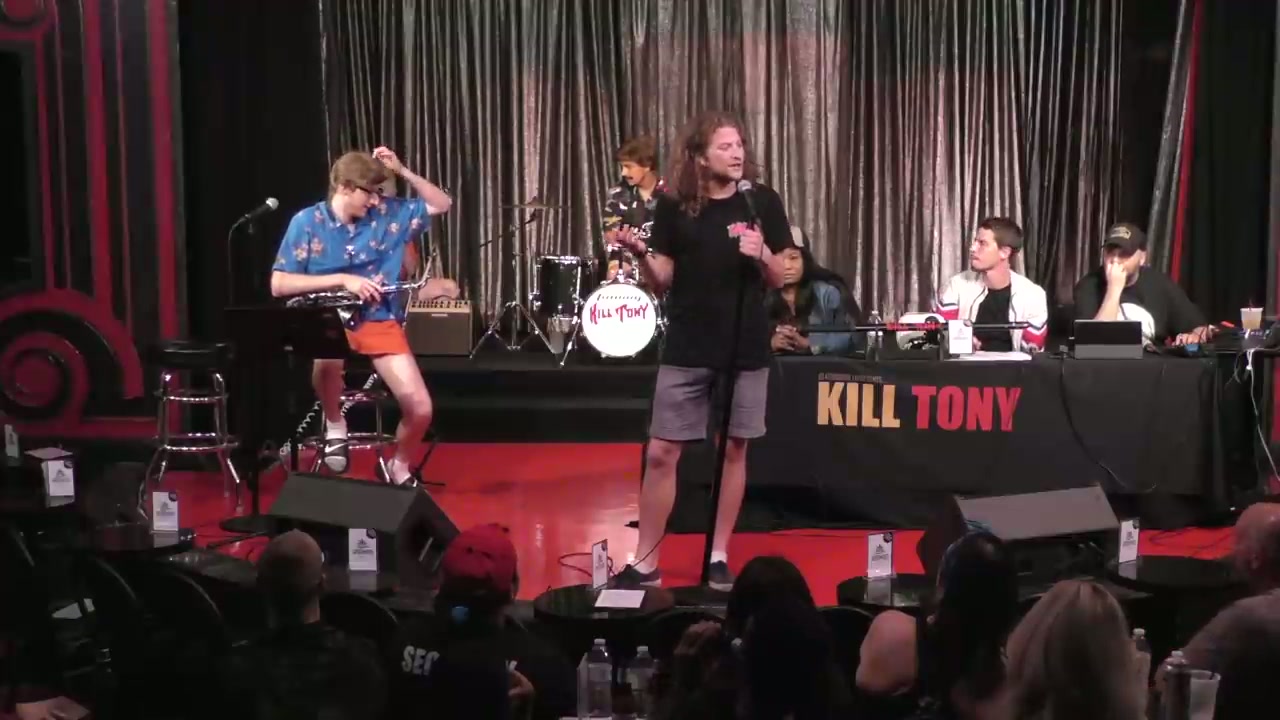 Tony Hinchcliffe hosts with guest host Ms. Pat, featuring the band as 'dads at a barbecue' with bucket pulls including comedians from various backgrounds, plus regulars William Montgomery and appearances by Todd Royce (golden ticket winner) and Kelsey Lane.