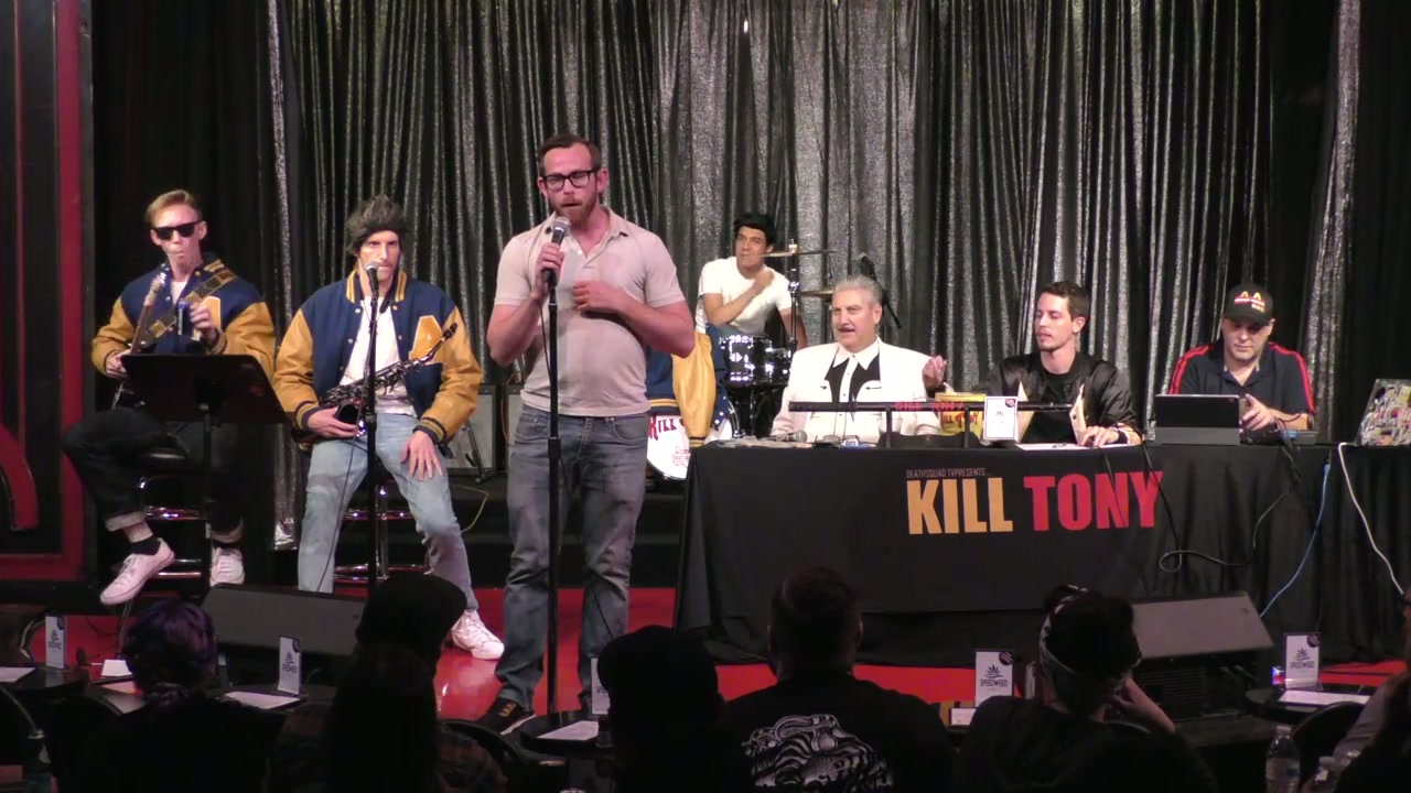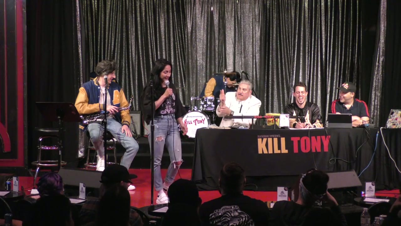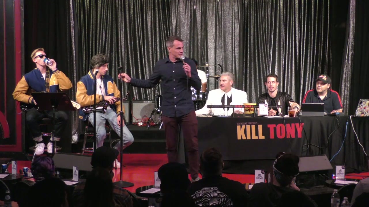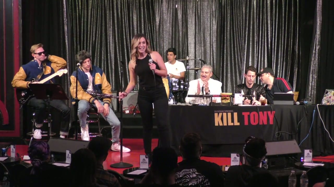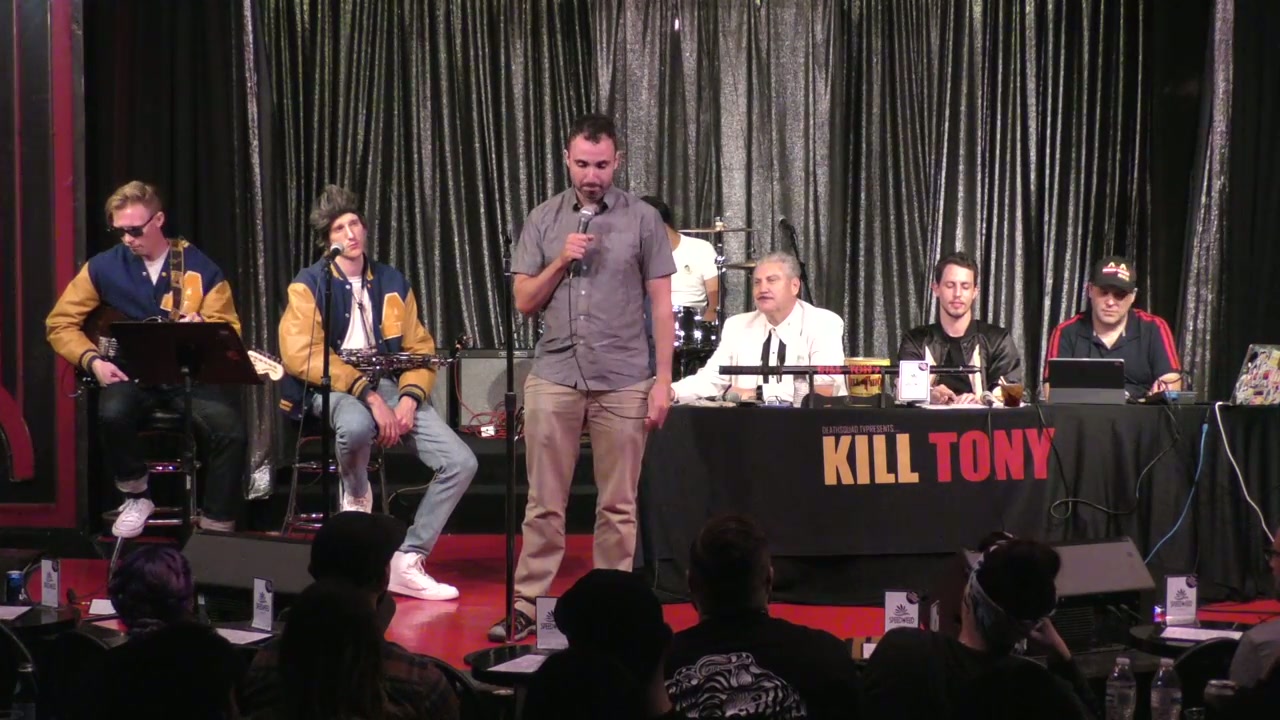 Tony Hinchcliffe hosts with legendary Comedy Store comedian Brian Holtzman as guest host. The band appears as frat guys in letterman jackets. Features bucket pulls and regular William Montgomery.