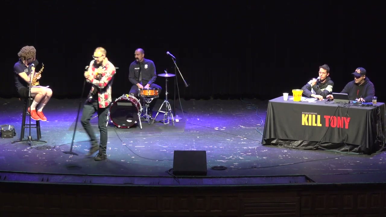 First ever Kill Tony show in Des Moines, Iowa at Woolies featuring Jack the Ripper, a variety of local comedians, and a special guest appearance by a gorilla on rollerblades