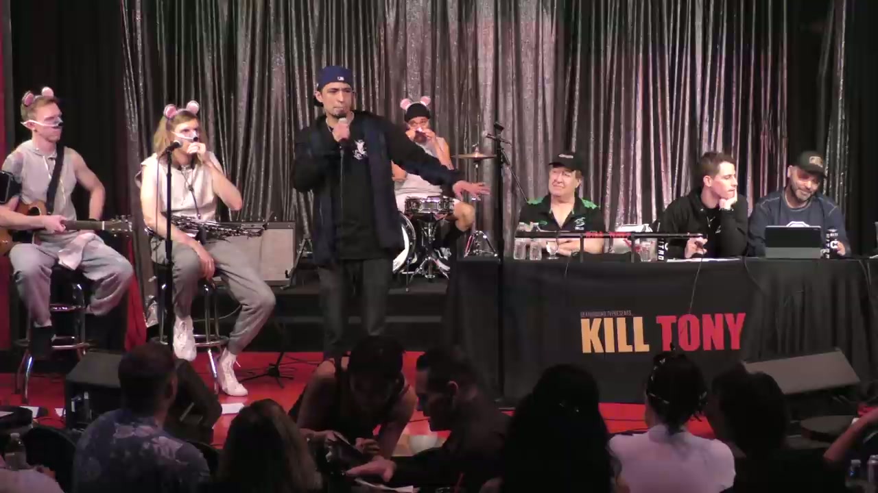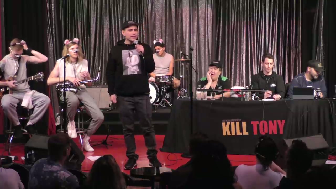 Tony Hinchcliffe hosts with guest Dom Irrera while the band performs as gym rats. Bucket pulls include comedians performing 60-second sets with interviews, plus regular William Montgomery and fan favorite Aphrodite.