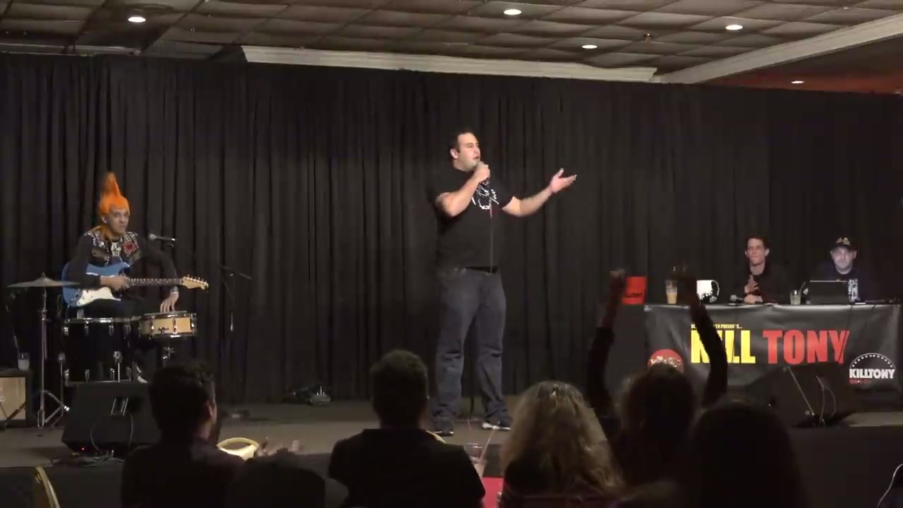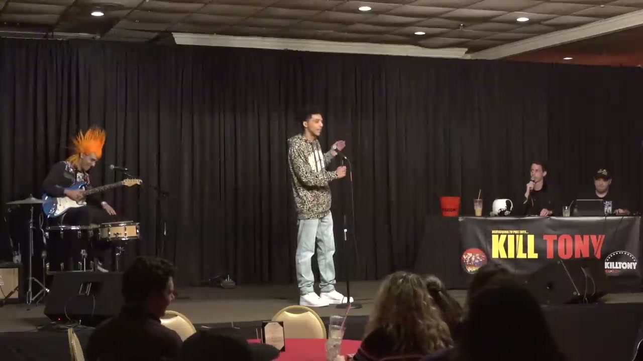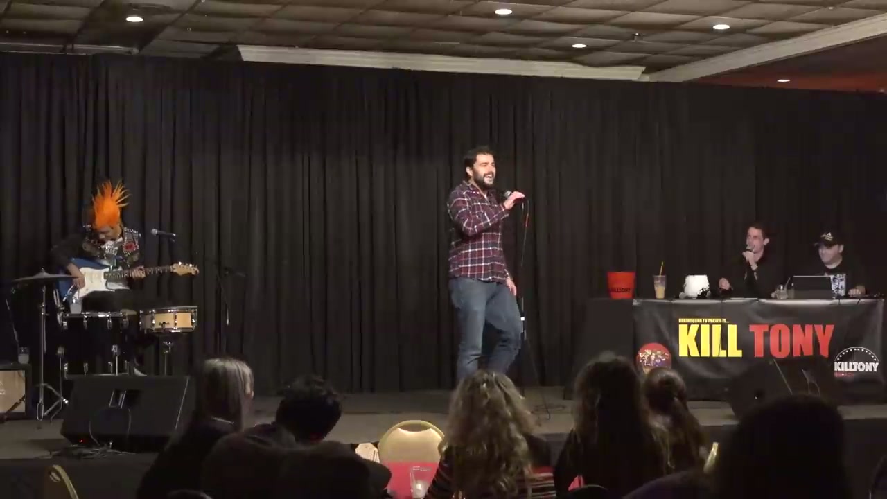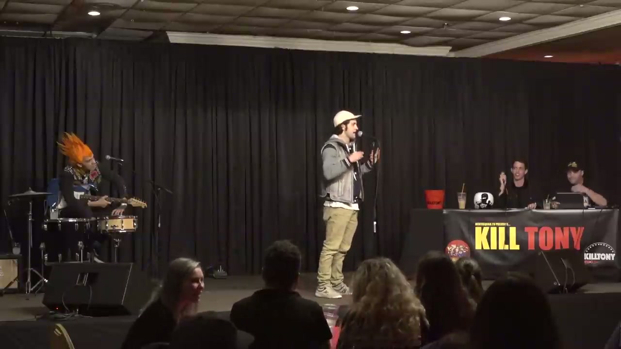 Hipster comedian who plays guitar and does jiu jitsu, performed a song on stage