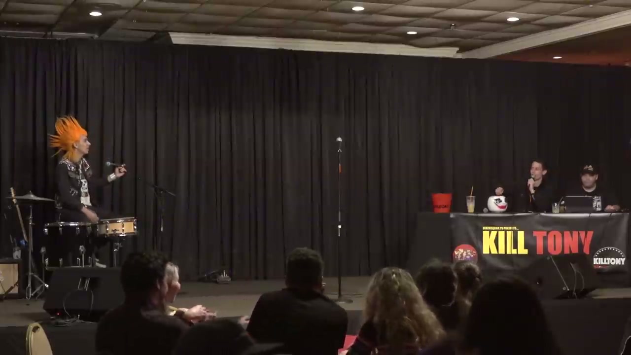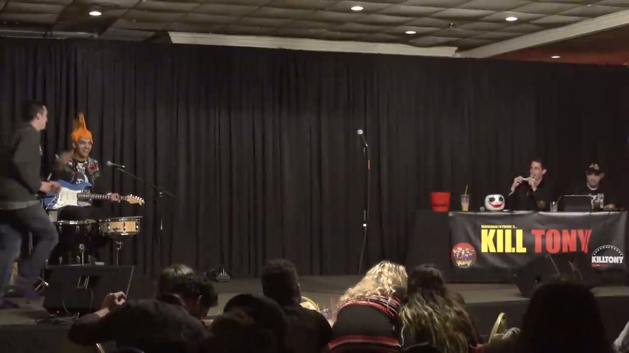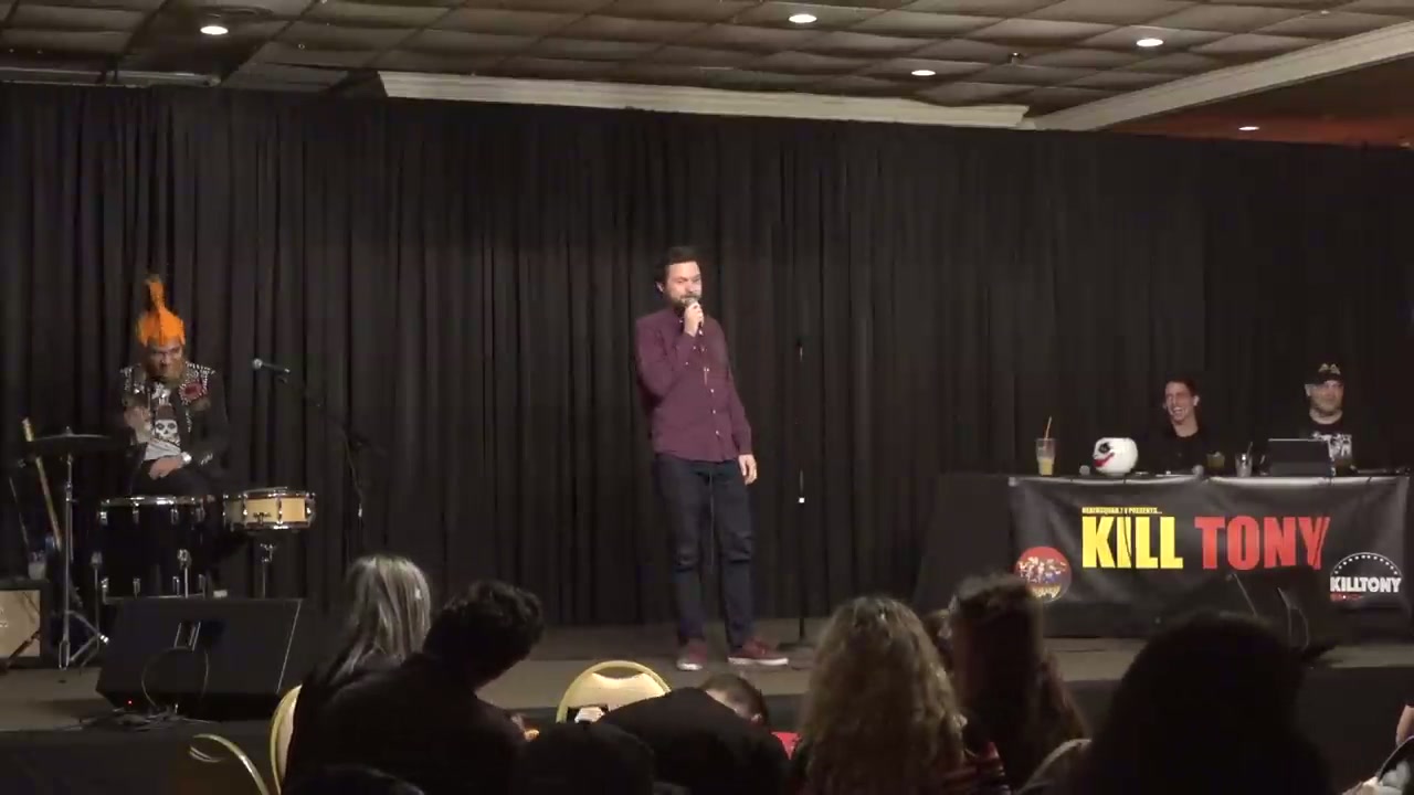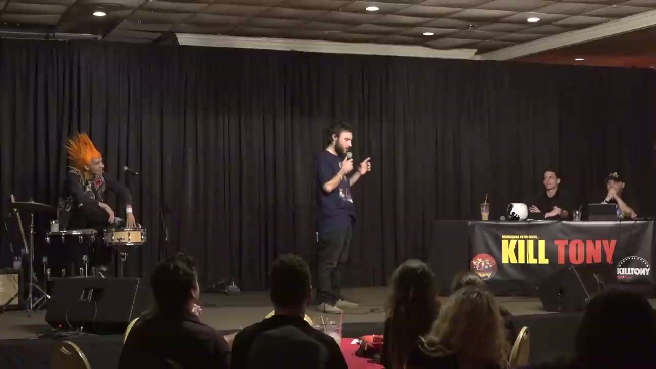 Hipster comedian who plays guitar and does jiu jitsu, performed a song on stage