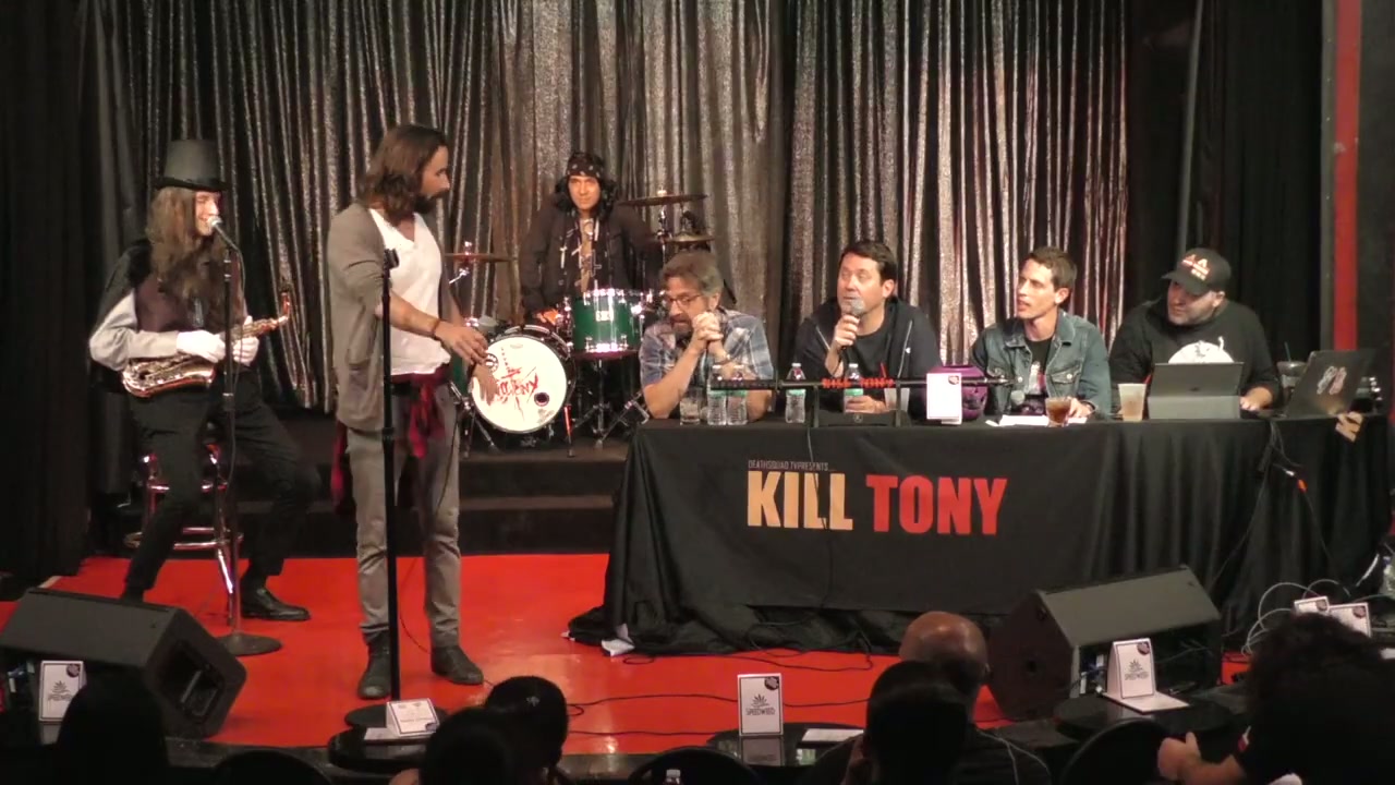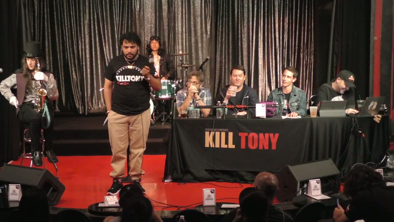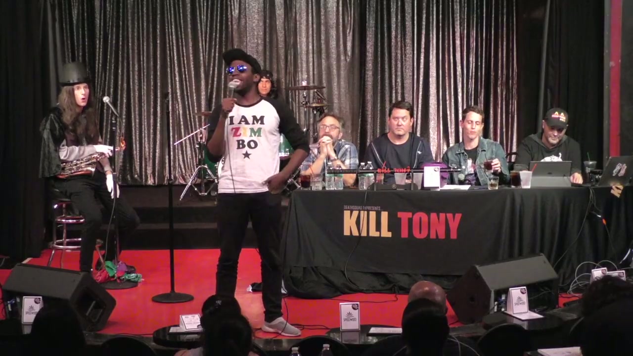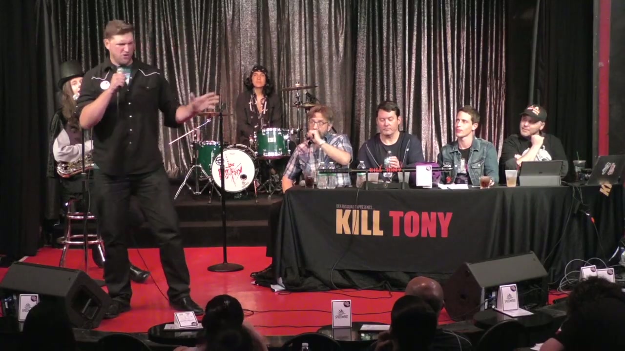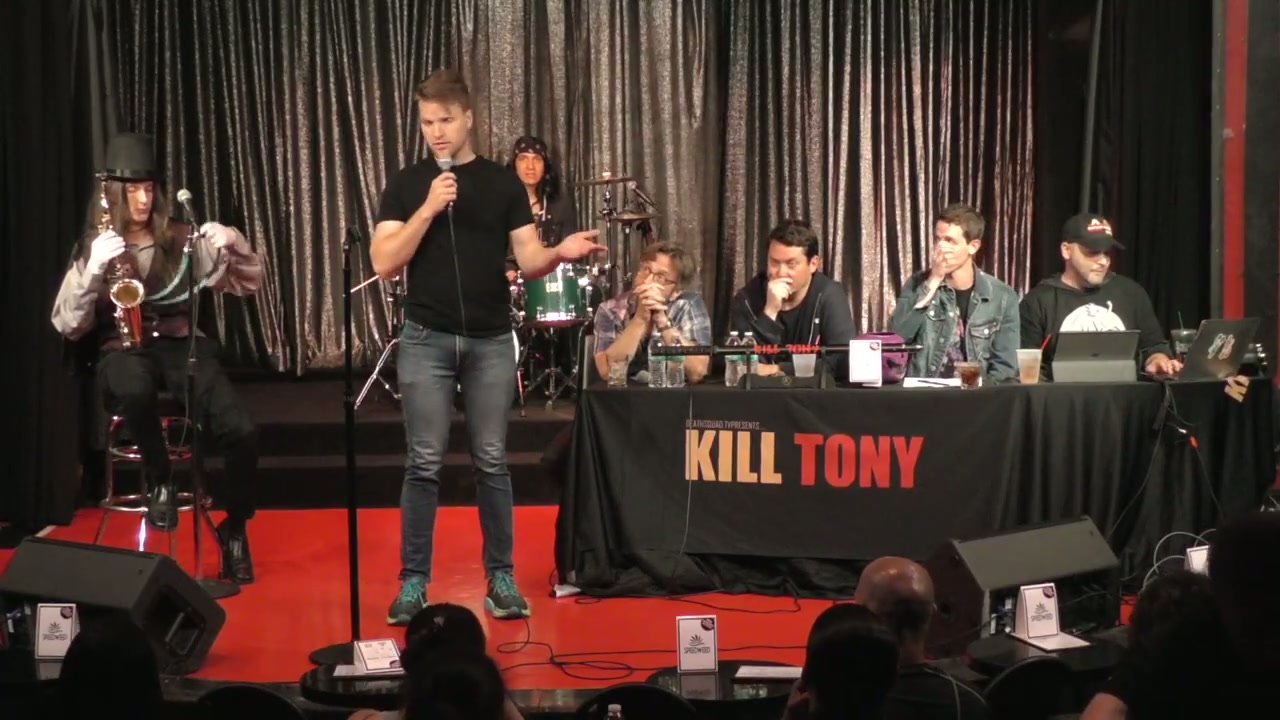 Tony Hinchcliffe hosts with guest hosts Marc Maron and Doug Benson, featuring the Kill Tony band as magicians and regular Malcolm Hatchet, plus bucket pulls including first-time performers and returning comedians