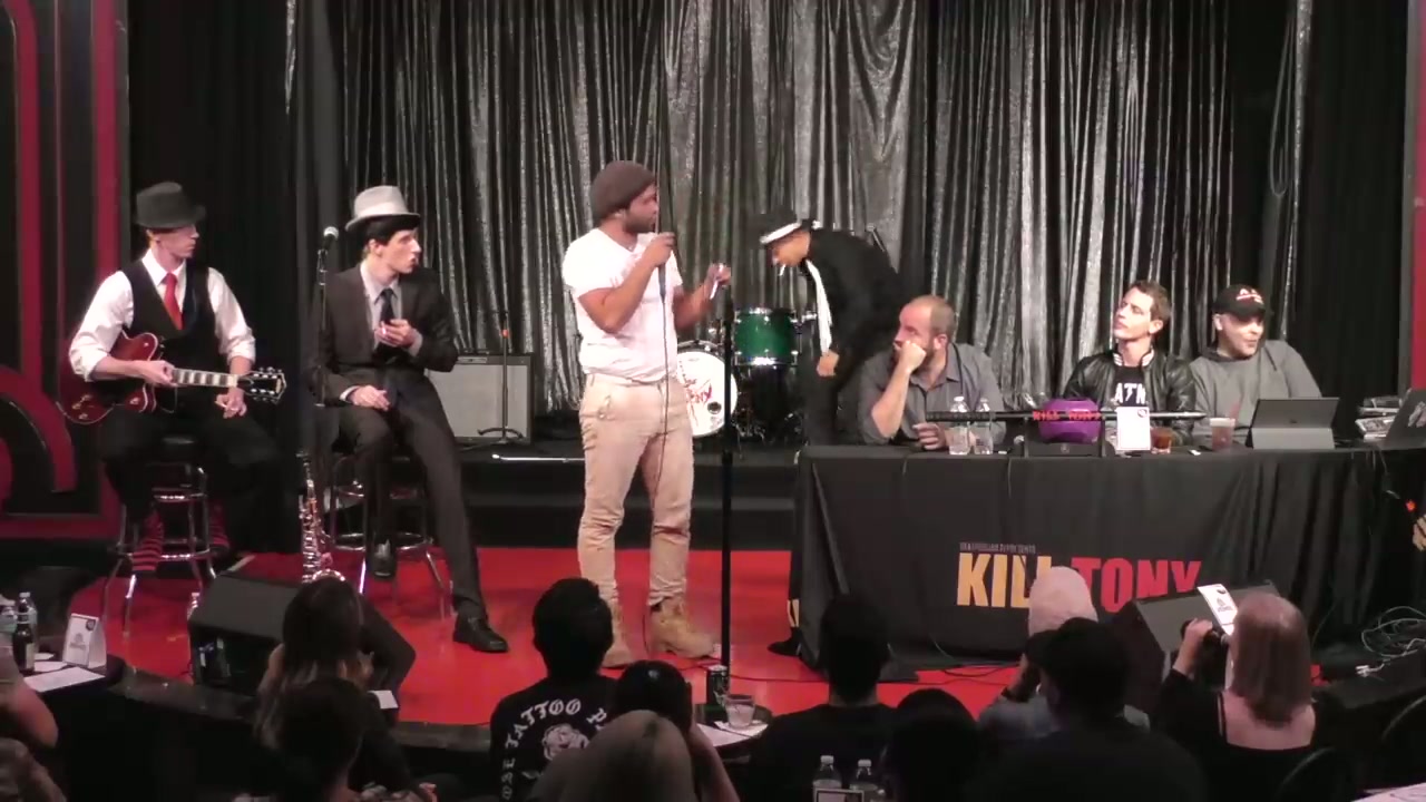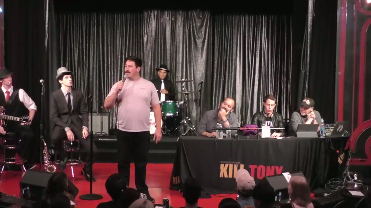 Tony Hinchcliffe hosts with guest host Tom Segura, featuring bucket pulls, regulars, and the Kill Tony band performing as Italian mobsters