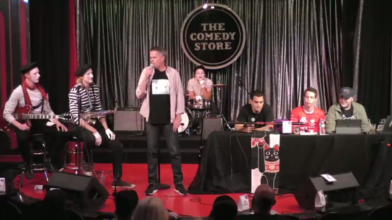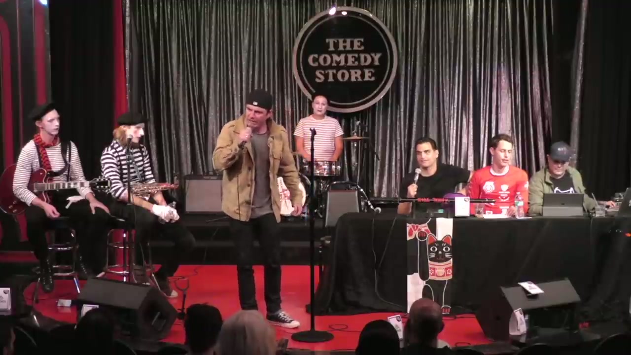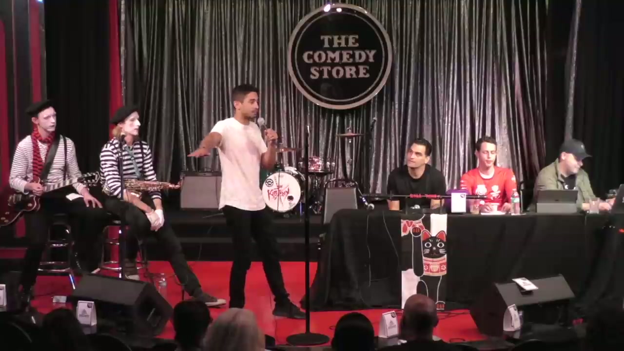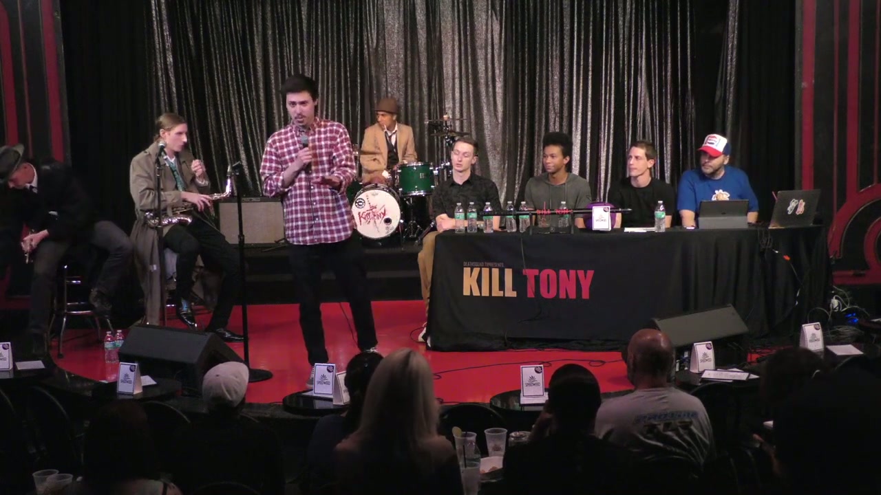 Episode featuring guest host Bret Ernst, with the Kill Tony band performing as mimes. Featured regular Malcolm Hatchet and bucket pulls including comedians discussing burn victims, Staples employment, Middle Eastern comedy, and various personal stories.
