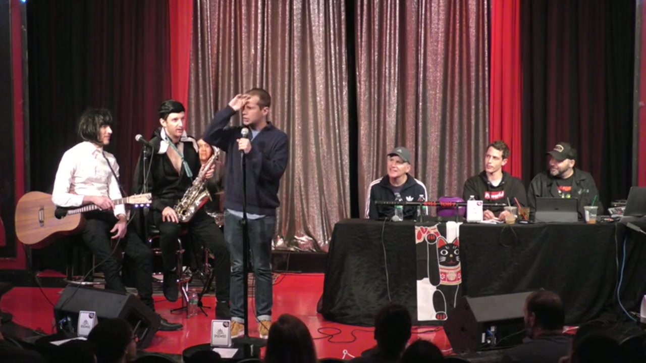 Episode 250 featuring Greg Fitzsimmons as guest host, with vampires as the band theme and special guest appearances including Ichabod and Wee Man