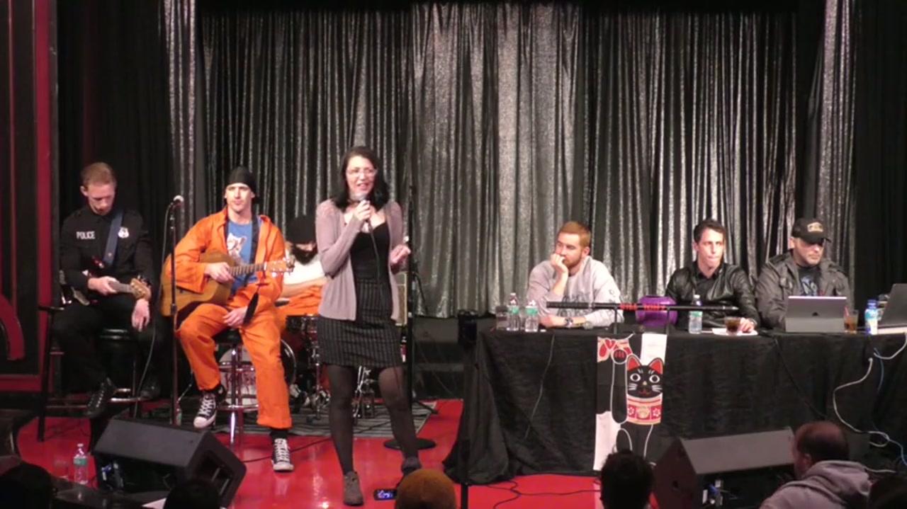Tony Hinchcliffe hosts with guest Doug Benson, featuring the band as mechanics. Comedians pull names from the bucket for 60-second sets followed by interviews, with regular Ally Makovsky performing a new minute.