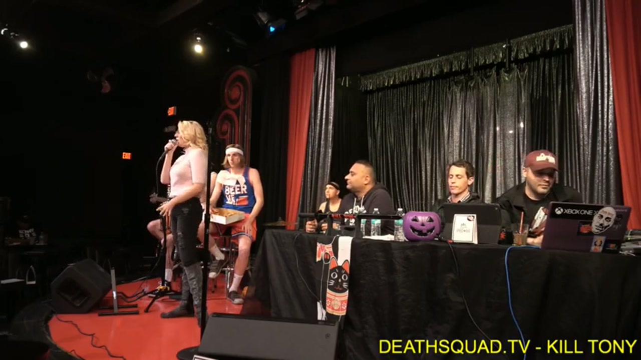 Tony Hinchcliffe hosts with guest Tom Segura, featuring bucket pulls, regulars, and the band in magician transvestite characters. The show includes tributes to Ralphie May and discussions about sobriety challenges.