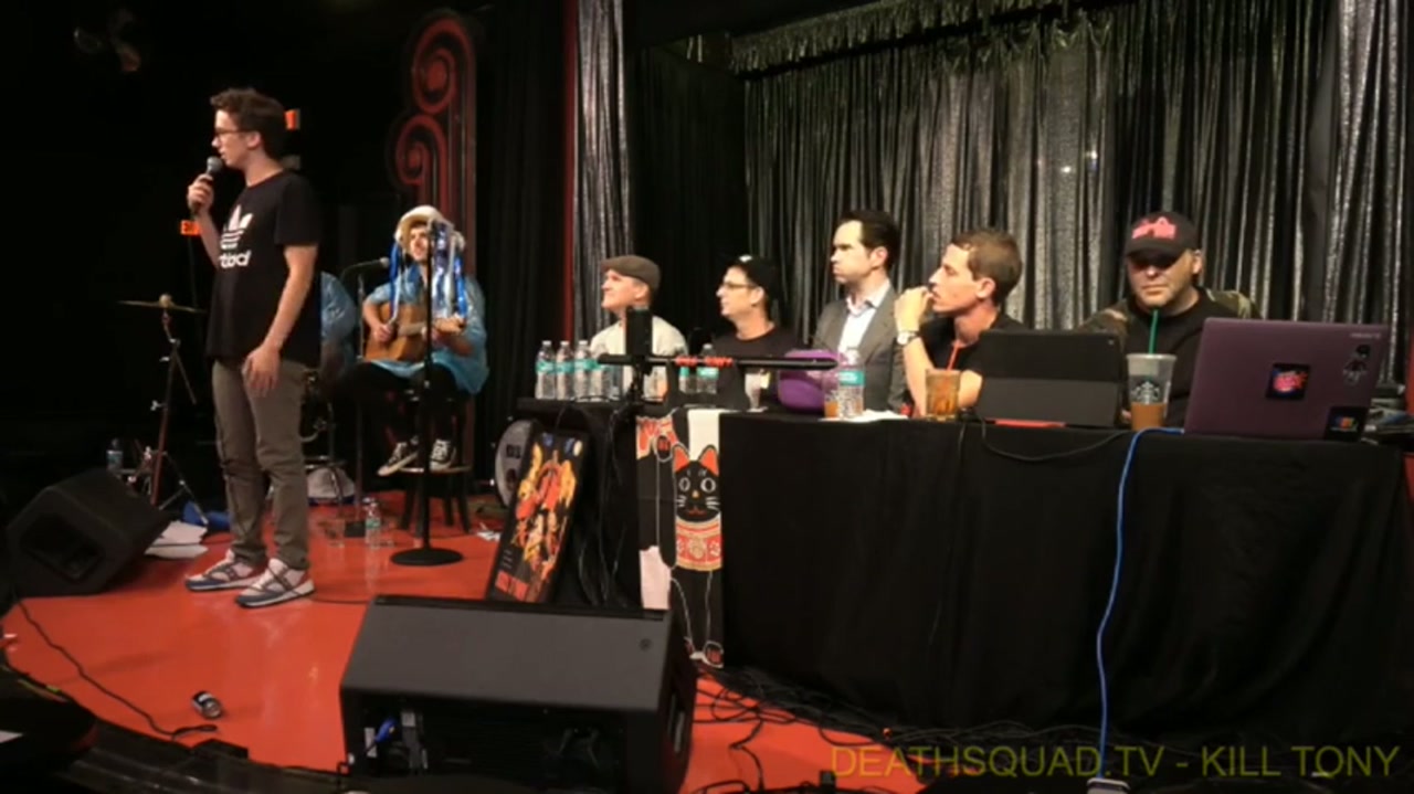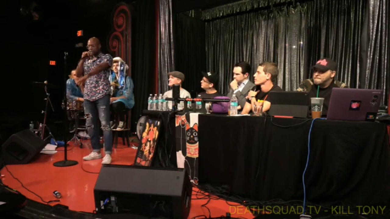 Tony Hinchcliffe hosts with guest hosts Greg Fitzsimmons, Moshe Kasher, and Jimmy Carr. The band performs as hurricanes Katrina, Irma, and Jose. Comedians perform 60 seconds from the bucket including standout performance by newcomer Meki Leaper.