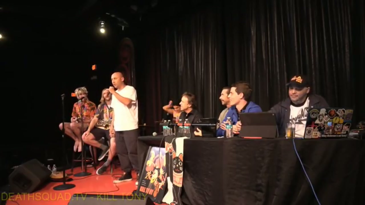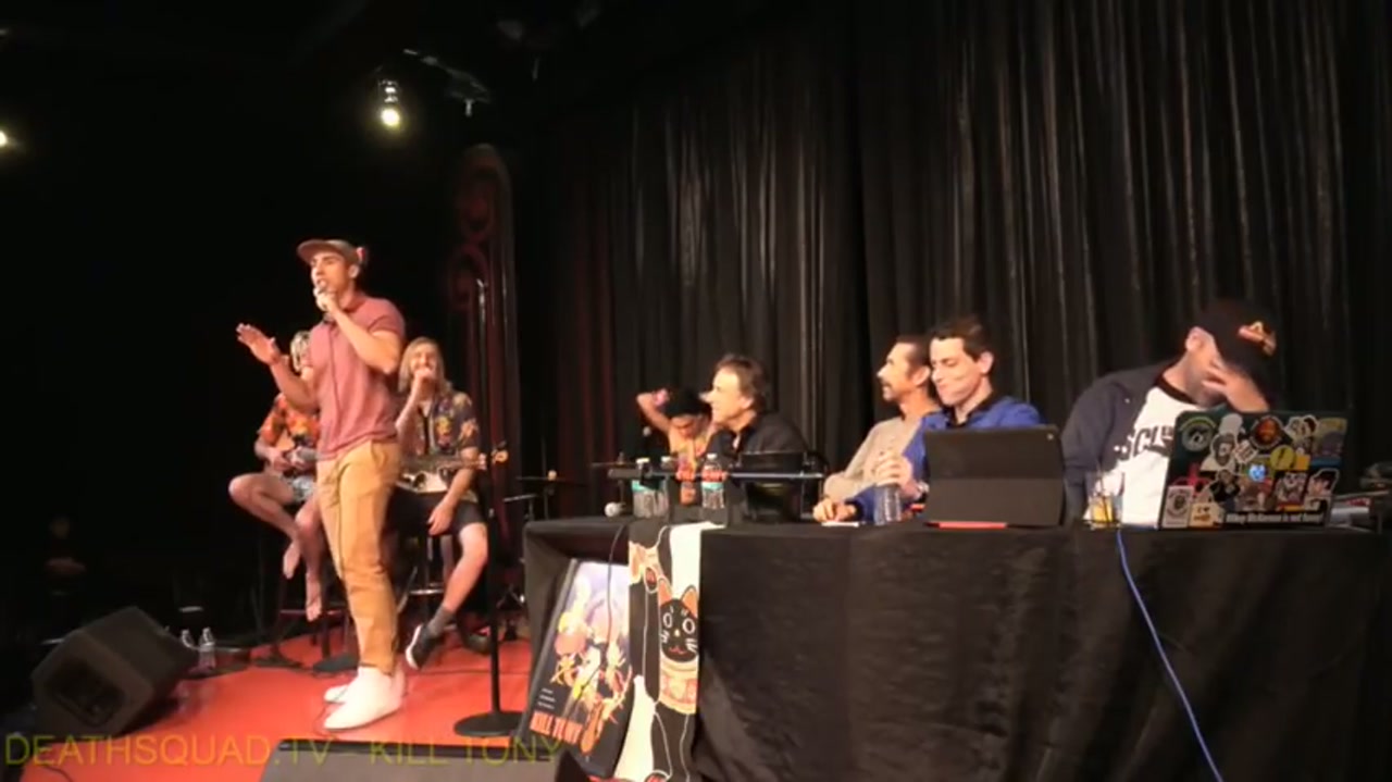 Tony hosts with guest hosts Kevin Nealon and Kirk Fox. The Hawaiian-themed band features Jeremiah Watkins and Pat Reagan. Bucket pulls include Derek Moshe (umpire), Jose Esquio (impressionist), Jonathan Flanagan, Michael Scott, Elvis Mujik (lives in a van), and regular Ally Makofsky performs a new minute.