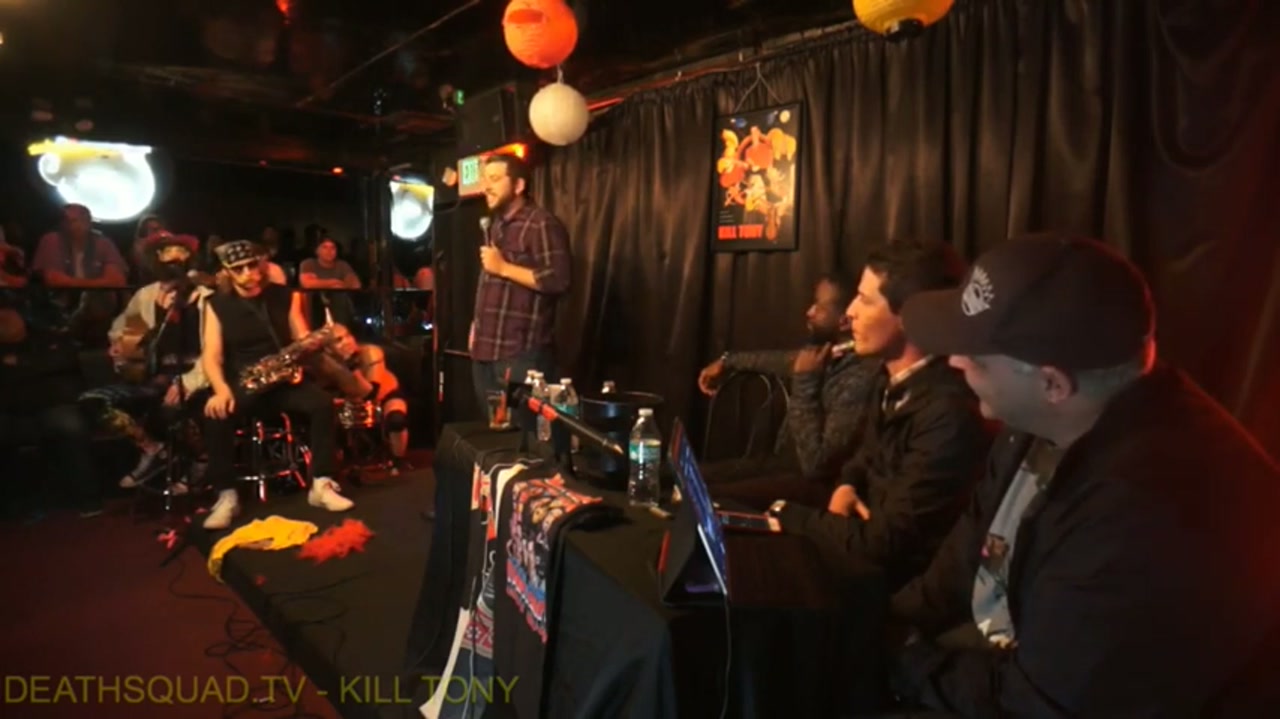 Tony Hinchcliffe hosts with guest hosts Sam Tripoli and Fahim Anwar. The Kill Tony band performs as The Beatles with Pat Reagan, Jeremiah Watkins, and Joel Jimenez. Featured comedians from the bucket include various performers, with regular Allie Makofsky delivering a new minute.