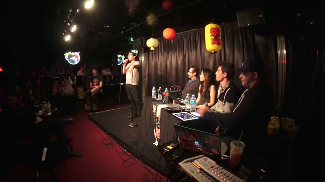 A live comedy podcast episode featuring guest hosts Vanessa Ramos and Kirk Fox, with bucket pulls and regular performers. The show includes therapy-themed comedy, shirt commentary, and discussions about homeless comedy.