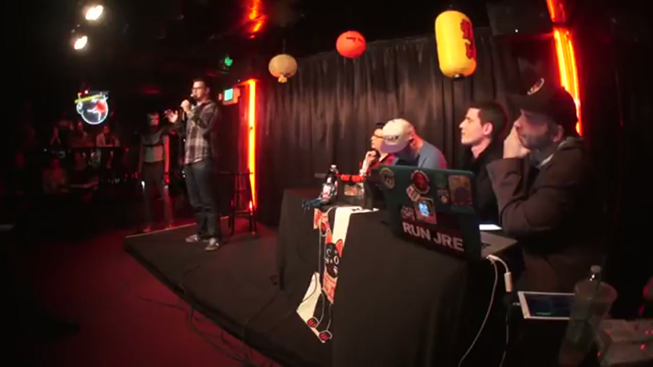 Homeless comedian from Miami doing his second time on stage, very nervous energy