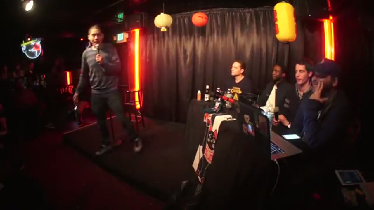 Comedian who recently shaved his head on the show, works as usher at Dolby Theater, did very short 13-second set