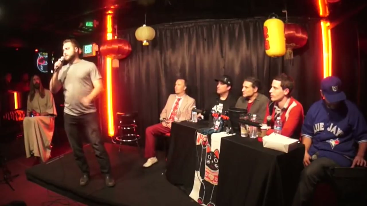 Live comedy podcast episode featuring guest hosts Doug Stanhope, Paul Provenza, and Matt Fulchiron, with bucket pulls, regular performers, and Tony's Ron Jeremy roast material prep