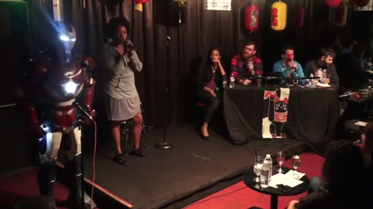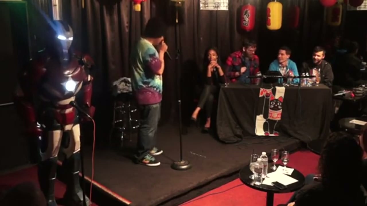 Tony and guests Mike Lawrence and Tiffany Haddish chat with comedians who perform 60-second sets, with regulars Sarah Weinschenko and Kimberly Congdon. The Iron Patriot provides security and comic book knowledge.