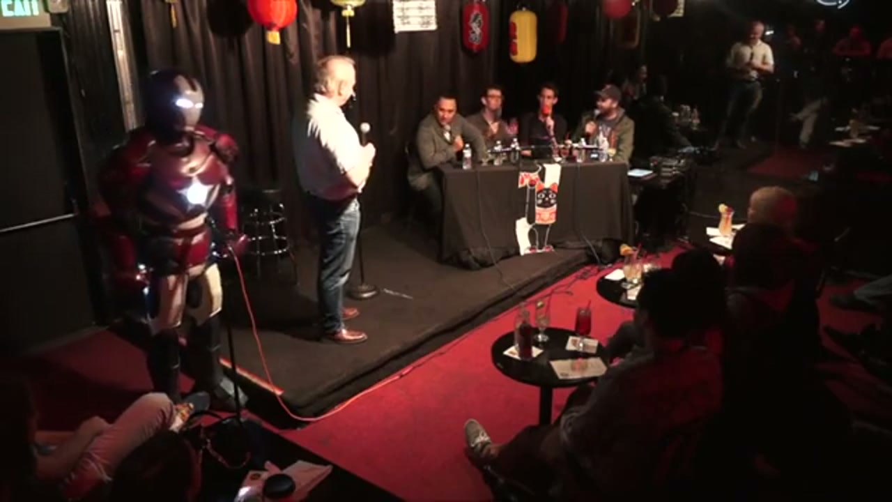 Live comedy podcast with comedians performing 60-second sets followed by interviews. Features bucket pulls, regulars, and guest hosts Rick Ingraham and Sandy Danto.