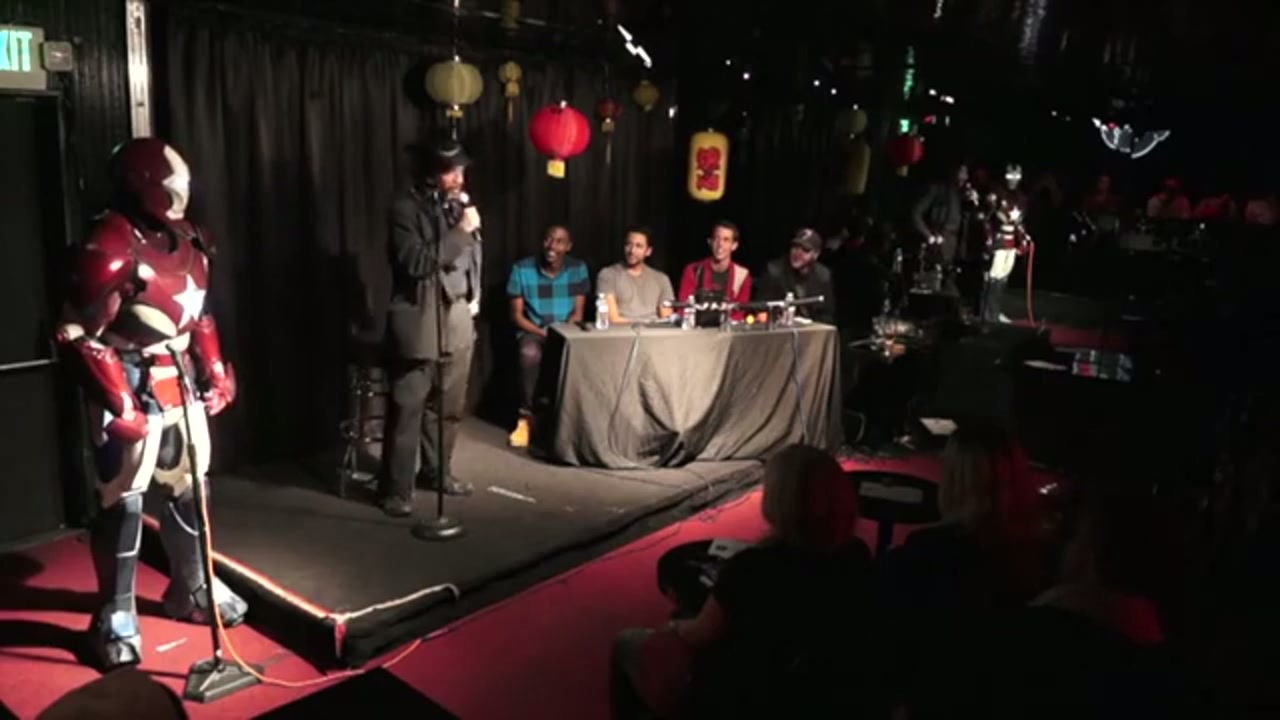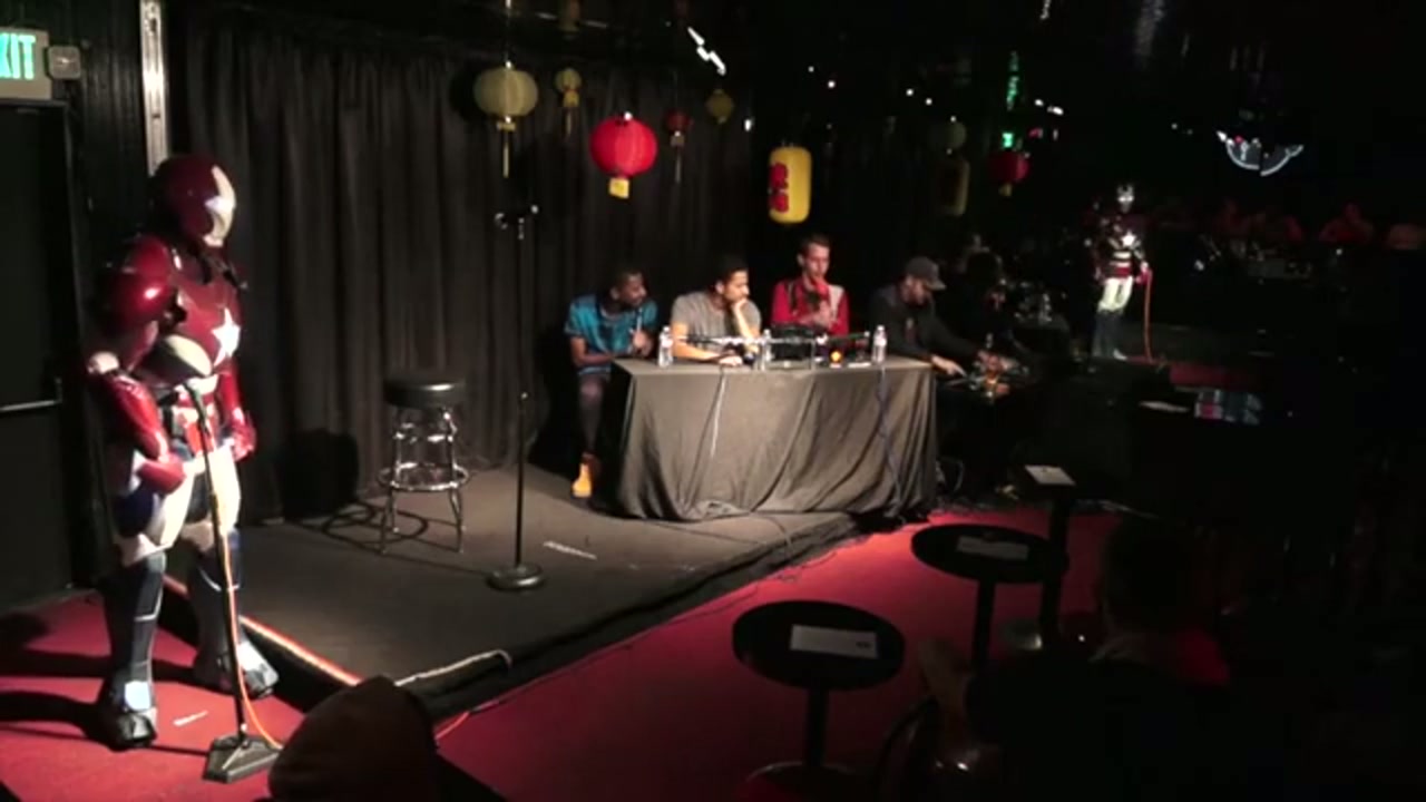 Tony hosts with guest hosts Jerrod Carmichael and Fahim Anwar. The Iron Patriot shares personal stories including his dating dry spell and past experiences. Multiple bucket pull comedians perform including Pete Christian Hessing (Jamaican comedian), Paul Aliyah (car pickup artist), and others. Regular performers Sarah Mostajabi and Kimberly Congdon close the show.