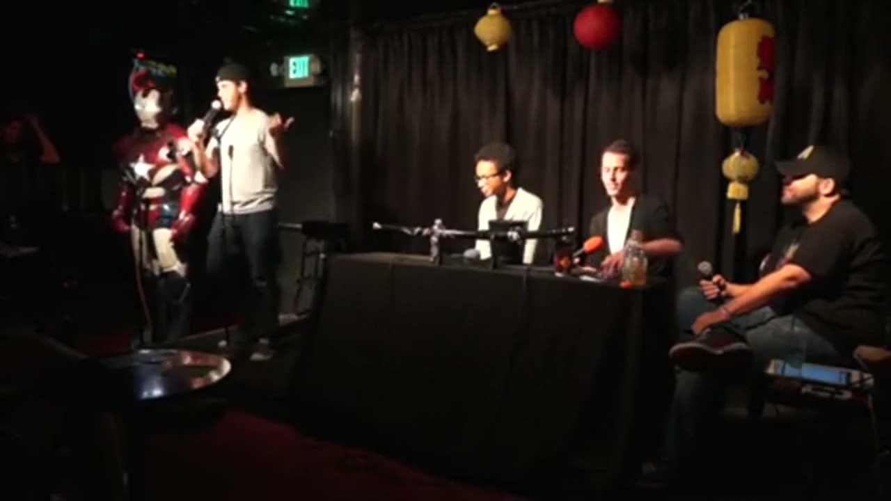 Tony Hinchcliffe hosts with guest Willie Hunter, featuring the Iron Patriot, bucket pulls from aspiring comedians, and regular performers Sarah Mostajavi and Kimberly Congdon.